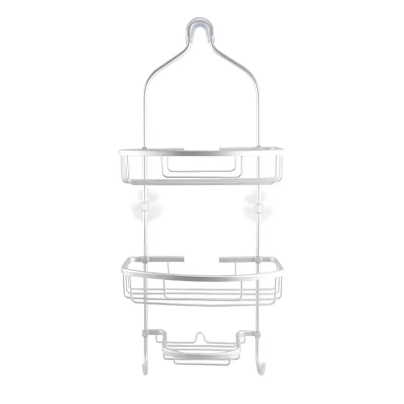 Modern 3 Tier Aluminum Hanging Rack Self Adhesive Bathroom Shower Shelf Organizer with Soap Basket